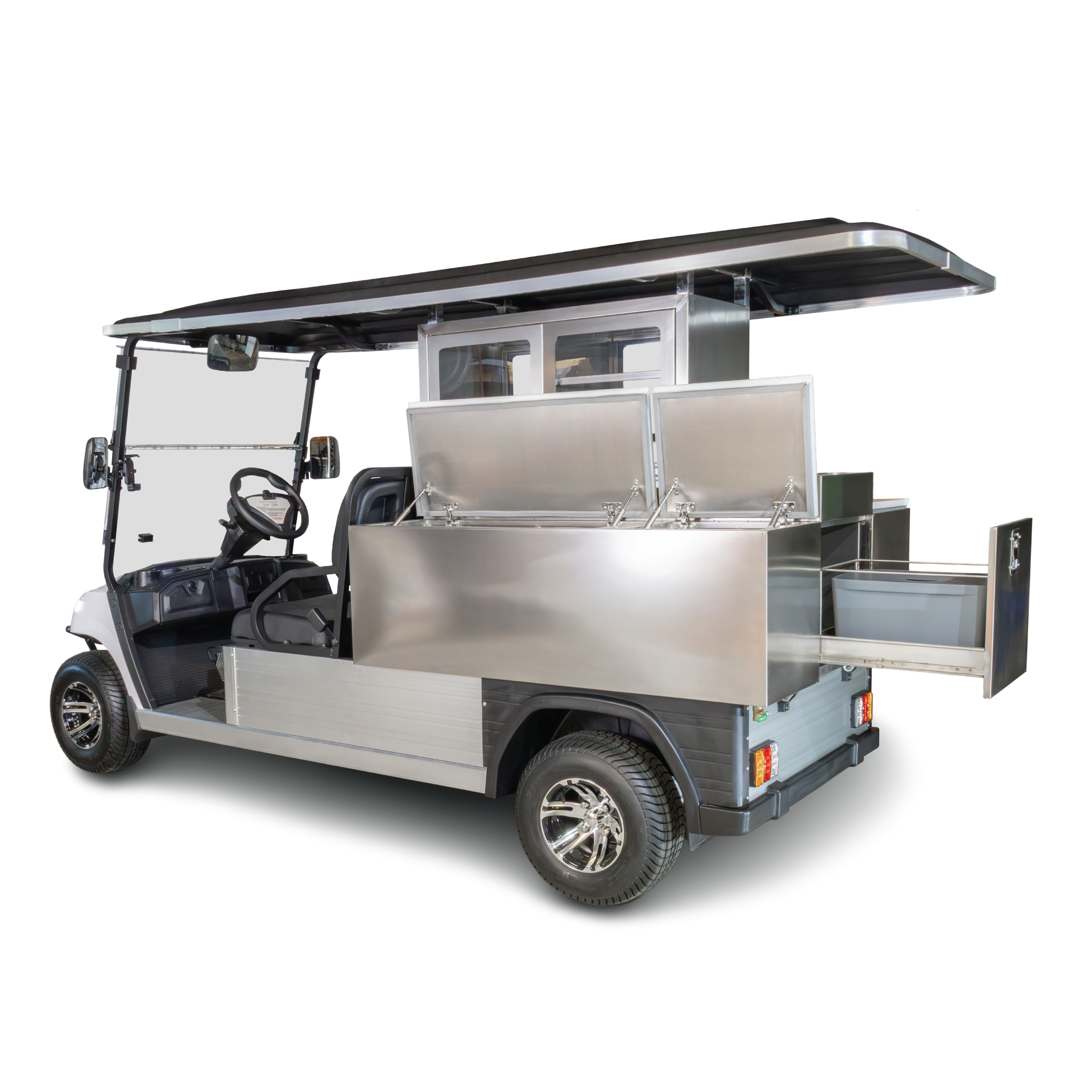 ECAR is constantly innovating and expanding our golf cart range to cater to the needs of individuals and businesses around the world. This latest food & beverage model is the newest and most modern type of catering cart on the market. Feature high quality stainless steel cabinet construction, this cart is not only versatile but built for the future.